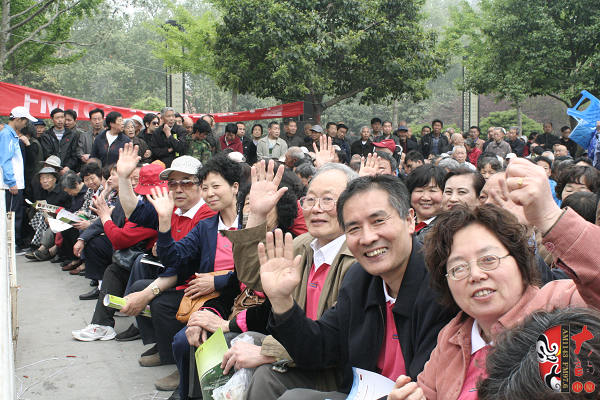 4月17日上午,在位于洛陽(yáng)市中心、以體現(xiàn)周朝文化為主題的周王城廣場(chǎng),“周公營(yíng)建洛邑”雕塑旁,主辦方舉辦了一場(chǎng)別開生面的戲曲演唱會(huì)。來自鄭州、洛陽(yáng)兩地的豫劇名家張?jiān)聵s、曾廣蘭、趙曉梅、王藝紅,著名演員徐俊霞、陳大華、劉亞林、曲韻、劉海功、沈萍,梨園春明星擂主張艷紅、謝憲笙等為來自全省各地的戲曲廣播《戲迷俱樂部》百余位戲迷和現(xiàn)場(chǎng)的廣大觀眾奉獻(xiàn)了精彩的戲曲唱段。藝術(shù)家們演唱的《洛陽(yáng)橋》、《秦雪梅》、《七品芝麻官》、《對(duì)花槍》、《拷紅》、《收姜維》、《朝陽(yáng)溝》、《倒霉大叔的婚事》、《小白鞋說媒》、《紅菊》等不同劇種、不同流派、不同行當(dāng)?shù)哪捴巳丝诘某唬┑糜^眾一陣又一陣的掌聲,河南戲曲廣播主持人媛媛、李鋮表演的雙簧妙趣橫生,引得觀眾樂不可支。