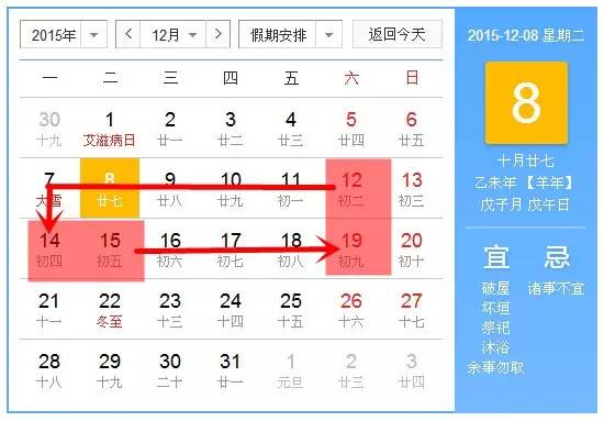 經(jīng)省政府同意,除保障會(huì)議活動(dòng)、城市運(yùn)行等必要的工作崗位外,中央駐鄭機(jī)關(guān)、事業(yè)單位和社會(huì)團(tuán)體,省直機(jī)關(guān)、事業(yè)單位和社會(huì)團(tuán)體,鄭州市機(jī)關(guān)、事業(yè)單位、中小學(xué)校、幼兒園和社會(huì)團(tuán)體,將12月12日(星期六)公休日調(diào)到12月14日(星期一)休息,12月19日(星期六)公休日調(diào)到12月15日(星期二)休息,12月12日(星期六)、12月19日(星期六)上班。鄭州市轄區(qū)內(nèi)企業(yè)和其他社會(huì)組織,可根據(jù)實(shí)際情況自主安排。