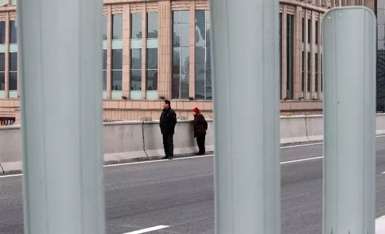 兩位市民站在高架上欣賞新橋