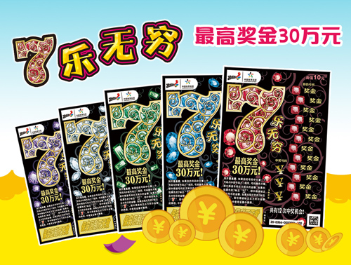 [摘要] 近日,“頂呱刮”家族又一新成員——“7樂(lè)無(wú)窮”火熱登陸我省,此票是一款數(shù)字類(lèi)主題即開(kāi)票,面值10元,頭獎(jiǎng)30萬(wàn)元,共有12次中獎(jiǎng)機(jī)會(huì)。