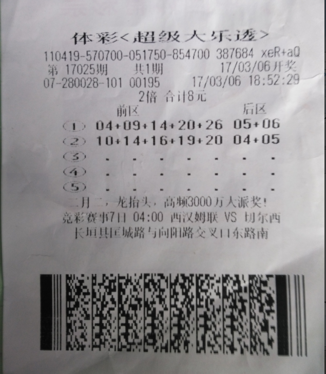 3月20日一大清早,新鄉(xiāng)市體彩分中心來(lái)了一對(duì)小兩口,詢(xún)問(wèn)后小兩口高興的說(shuō)自己買(mǎi)的大樂(lè)透中獎(jiǎng)了,中了一萬(wàn)多,今天來(lái)分中心辦理兌獎(jiǎng)手續(xù)。