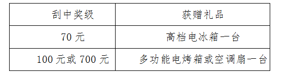 活動(dòng)時(shí)間:2017年7月8日至2017年7月28日?;顒?dòng)期間,彩民在我省任一體彩銷售網(wǎng)點(diǎn)購(gòu)買20元面值“7”主題即開票,單張彩票刮中70元、100元或700元獎(jiǎng)級(jí),并經(jīng)兌獎(jiǎng)設(shè)備(IVT或BCR)完成兌獎(jiǎng)且剪角處理后,除正常兌付獎(jiǎng)金外,另可獲得精美禮品一份,彩民多中多獎(jiǎng),數(shù)量不限!詳見下表:
