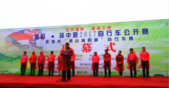 9月27日,以“全民健康,綠色中原”為宗旨的“體彩·環(huán)中原2017自行車公開賽--永城市泰山瑞豹杯自行車賽”在河南省永城市日月湖畔舉行。河南省自行車運動管理中心書記李健、永城市人大常委會副主任駱本京、永城市人民政府副市長吳英杰、永城市教育體育局副局長趙海濤等相關(guān)部門負(fù)責(zé)人以及來自國內(nèi)外600多名運動員和多家媒體參加了啟動儀式,啟動儀式由永城市政府辦公室副主任杜平主持。