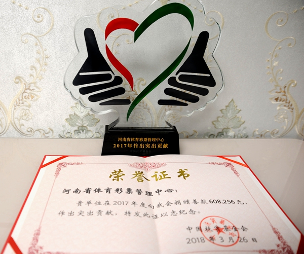 河南省體育彩票管理中心榮獲突出貢獻(xiàn)獎(jiǎng)