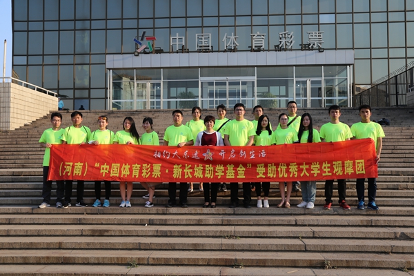 2017年,首批得到“中國(guó)體育彩票·新長(zhǎng)城助學(xué)基金”資助的信陽(yáng)師范學(xué)院2013級(jí)優(yōu)秀大學(xué)生畢業(yè)之際,河南省體育彩票管理中心還邀請(qǐng)其中的部分學(xué)生代表,在老師的帶領(lǐng)下到北京觀摩中國(guó)體育彩票現(xiàn)場(chǎng)開(kāi)獎(jiǎng),在他們踏入社會(huì)進(jìn)入工作崗位之前,開(kāi)闊眼界并深入了解和見(jiàn)證中國(guó)體育彩票作為國(guó)家公益彩票的公益屬性和公信力。