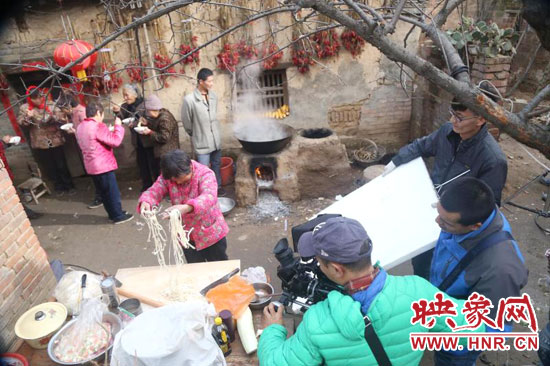 12月1日,公益微電影《母愛的味道》在襄城縣雙廟鄉(xiāng)虎張村開機(jī)拍攝。影片以蒙太奇手法推進(jìn):母親呵護(hù)襁褓中“嗷嗷”待哺的兒子,畫外音傳出的卻是6歲兒子的“嬉鬧聲”;6歲兒子撒嬌的“表情”與25歲時(shí)感激的“神情”蒙太奇手法切換;25歲時(shí)兒子“埋頭喝下一口面湯”與40歲時(shí)兒子“抬頭咽下一口面湯”蒙太奇手法切換等表現(xiàn)手法,使得故事溫暖而感人。