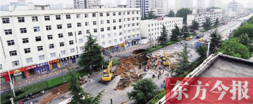 8月1日傍晚,鄭州市西郊普降大雨。19點(diǎn)30分左右,鄭州市中原路與文化宮路交叉口東50米路北處隔離花壇在暴雨中塌方,一株高20米、直徑35厘米的雪松隨暴雨塌入坑中。