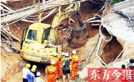 塌方發(fā)生時,一男一女被民警和熱心市民救出。目擊者稱,坑中仍有一名女士和小孩,但警方經(jīng)過排查,除了名叫張帆的女士,尚未發(fā)現(xiàn)有人員失蹤。今報三批記者輪班蹲守現(xiàn)場,截至3日2時,救援在經(jīng)歷了近30個小時后,尚未找到張帆?!鯑|方今報記者 夏萍 見習(xí)記者 靳亞東 宋迎迎 攝影 首席記者 袁曉強(qiáng) 張曉冬 沈翔 邱琦