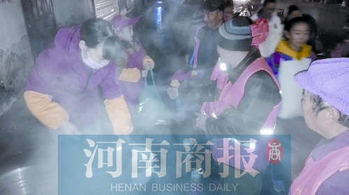 剛開始,她和隊(duì)友在鄭大一附院對面的立交橋下發(fā)粥,后來她就在西十里鋪84路公交站臺(tái)旁設(shè)了發(fā)粥點(diǎn)。現(xiàn)在,他們的愛心團(tuán)隊(duì)有46人,開設(shè)了四個(gè)發(fā)粥點(diǎn),另外兩個(gè)是姚寨發(fā)粥點(diǎn)和冉屯路電廠路口發(fā)粥點(diǎn)。