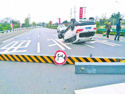 早上6時(shí)許,記者在現(xiàn)場(chǎng)看到,該處限高桿被撞斷后橫在路面上,斷桿的旁邊,一輛轎車四輪朝天地“躺”在路中間,將整個(gè)上橋口堵死,導(dǎo)致車輛無(wú)法上橋,只能走橋下,造成交通擁堵不堪。交警二大隊(duì)與中原區(qū)三官?gòu)R辦事處的巡防隊(duì)員,正在現(xiàn)場(chǎng)疏導(dǎo)交通。