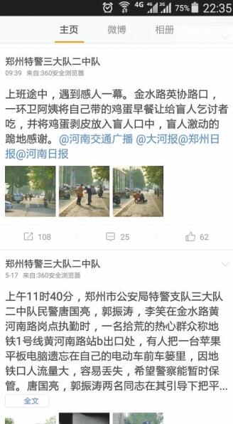 昨日上午9時(shí)39分,網(wǎng)友“鄭州特警三大隊(duì)二中隊(duì)”發(fā)布了一條微博說(shuō):“上班途中,遇到感人一幕。金水路英協(xié)路交叉口,一環(huán)衛(wèi)工阿姨將自己帶的早餐給盲人乞討者吃,并將雞蛋剝皮放入盲人口中,盲人激動(dòng)跪地感謝。”