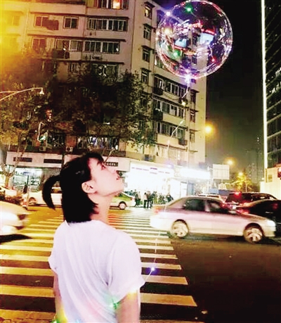 “發(fā)光氣球”構(gòu)造簡(jiǎn)單,充有氦氣的透明氣球表面有一圈LED燈帶,燈帶末尾連著一個(gè)裝有三節(jié)電池的電池盒,電源直接與燈帶相連,可以隨時(shí)控制燈帶的開關(guān)。氣球可維持三四天,電量可用10余天,補(bǔ)充一次氦氣需10元。