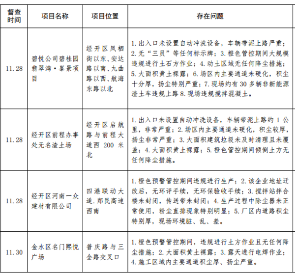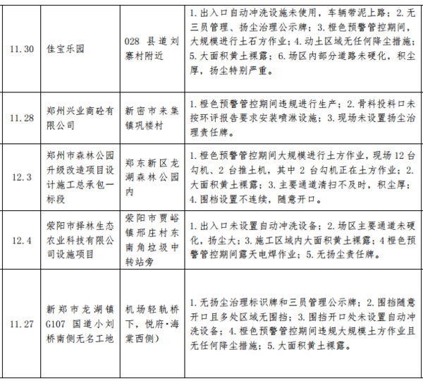 12月7日,記者從鄭州市環(huán)境污染防治攻堅辦了解到,11 月 27 日至 12 月 3 日,鄭州市環(huán)境污染防治督導組重點對全市"封土行動"方案、橙色預警管控措施落實和 30天沖刺行動方案落實情況進行督導檢查。