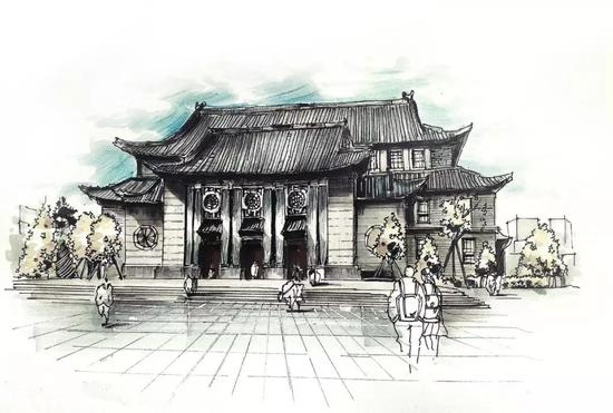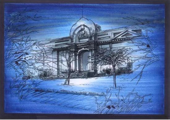 簡單勾勒,沒有濃墨重彩,一如大禮堂古樸典雅的模樣。大禮堂前人來人往,四季更替,她靜穆佇立,深情地望著每一位腳步匆匆的學子。