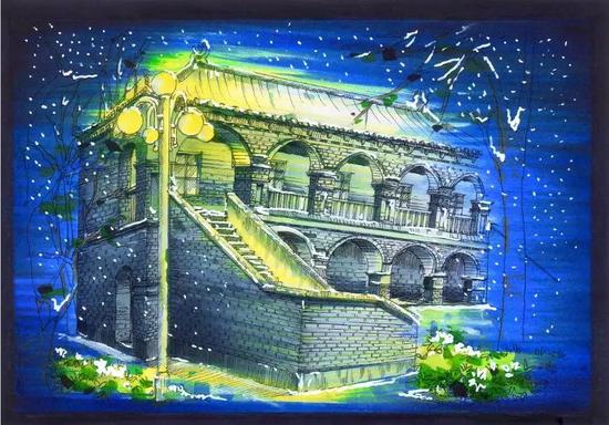 有彩色的付出就有金色的回報。手繪畫作如此受歡迎,邢年轉(zhuǎn)很受激勵,也由此發(fā)現(xiàn)了潛在商機。2017年,邢年轉(zhuǎn)和幾個同學創(chuàng)辦了公司,邢年轉(zhuǎn)作為美術(shù)總監(jiān),負責創(chuàng)作,試推廣的手繪開封的作品也有兩百套。今年,他又參加了尉氏縣規(guī)劃館的籌備,手繪尉氏縣興國寺塔、劉青霞故居紀念館、老城門和阮籍嘯臺的復(fù)原圖。