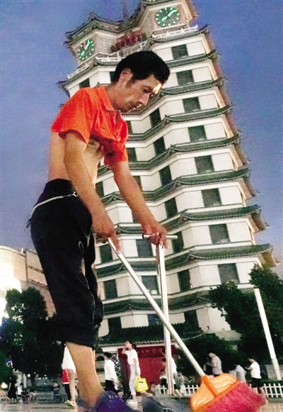昨晚,二七廣場上一環(huán)衛(wèi)工在掃地