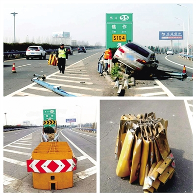 一轎車在焦作一高速口撞上隔離欄