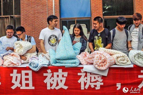 2015年05月31日,北京,清華大學(xué)生物科技學(xué)院大三學(xué)生小磊(左一)花800元買下了兩套學(xué)姐的被子。清華大學(xué)生物科技學(xué)院的大三學(xué)生小磊說,他在閑魚app上花了近800元拍下了兩床學(xué)姐的舊被子,就旁人看來這簡直就是“天價”,可小磊卻稱 “不貴!學(xué)姐馬上要回韓國了,我仰慕她三年,留樣?xùn)|西給自己作個念想也好”,小磊說。