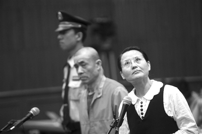 2011年5月12日,季羨林舊居失竊案開(kāi)庭,被告人王如被帶到法庭門口時(shí)提出抗議,認(rèn)為身著號(hào)服是對(duì)自己的侮辱,堅(jiān)持要脫掉號(hào)服。獲得法庭準(zhǔn)許后,她換上黑白相間的便裝受審。資料圖片/新京報(bào)記者王貴彬