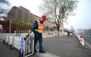 2014年4月2日,北京長安街上多個路口增設了封機動車護欄,紅燈時非機動車護欄拉起,防止非機動車闖紅燈。圖為綠燈亮起,護欄打開正常通行。