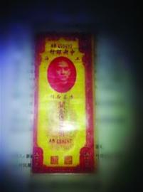 昨日上午9時許,在鐵西區(qū)永樂附近的亢女士,在網(wǎng)上發(fā)出一張照片,上面是用透明塑料袋包裝的“紙幣”,紙幣上畫有孫中山頭像,從右至左寫著中央銀行四個字,接著是用繁體字寫下的面值“五百萬”元,紙幣下還有一行小字寫著“民國三十六年”。