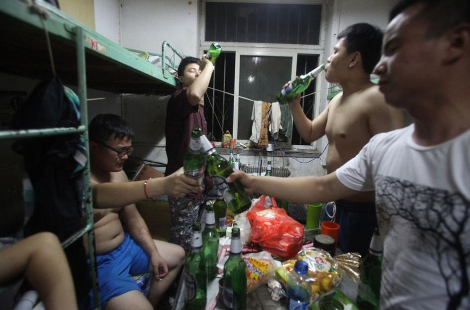 2013年6月24日,山東濟南,在山東師范大學宿舍樓里,舍友們緊緊抱在一起不舍離去。因為這是他們大學生生涯的最后一夜。當晚,大學生們無法入眠,酒杯聲、哭聲交織在整個宿舍樓。第二天起床就要背著行囊啟程了,此時...