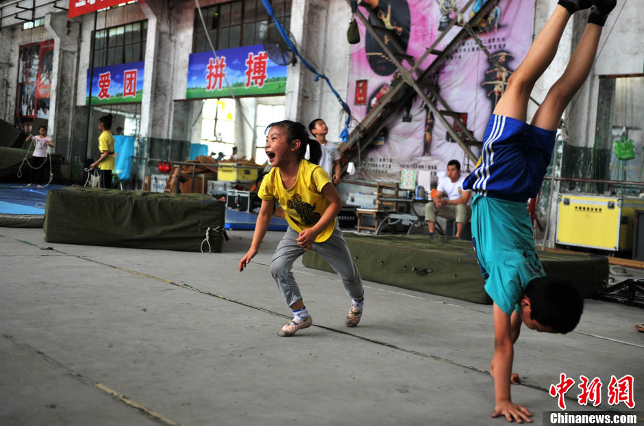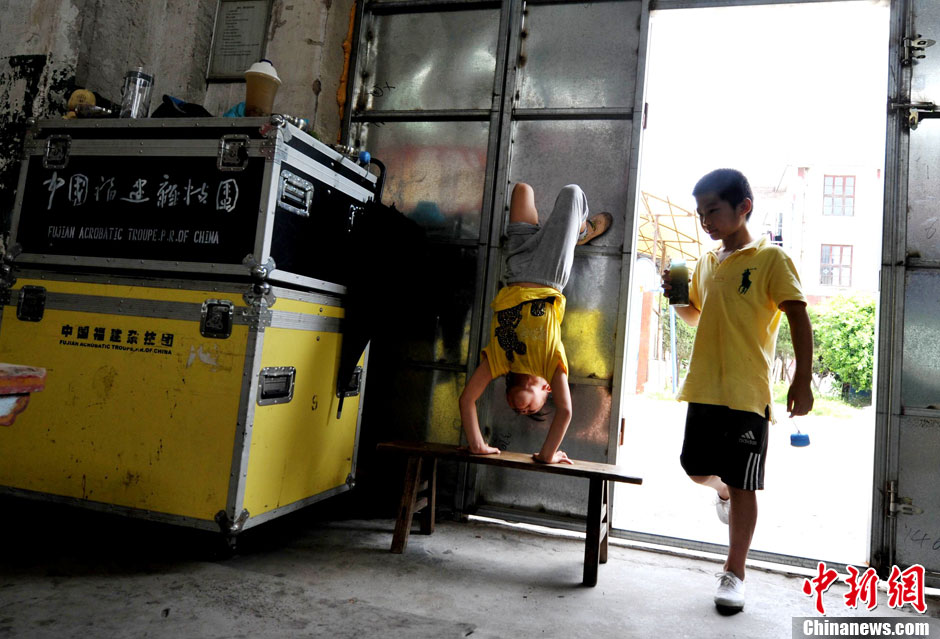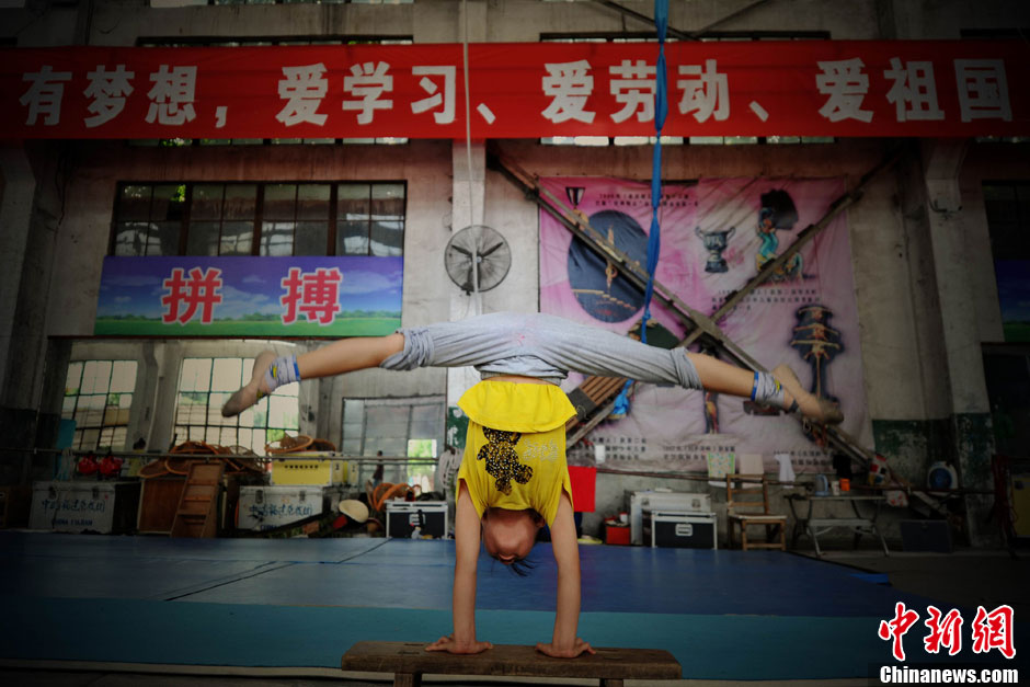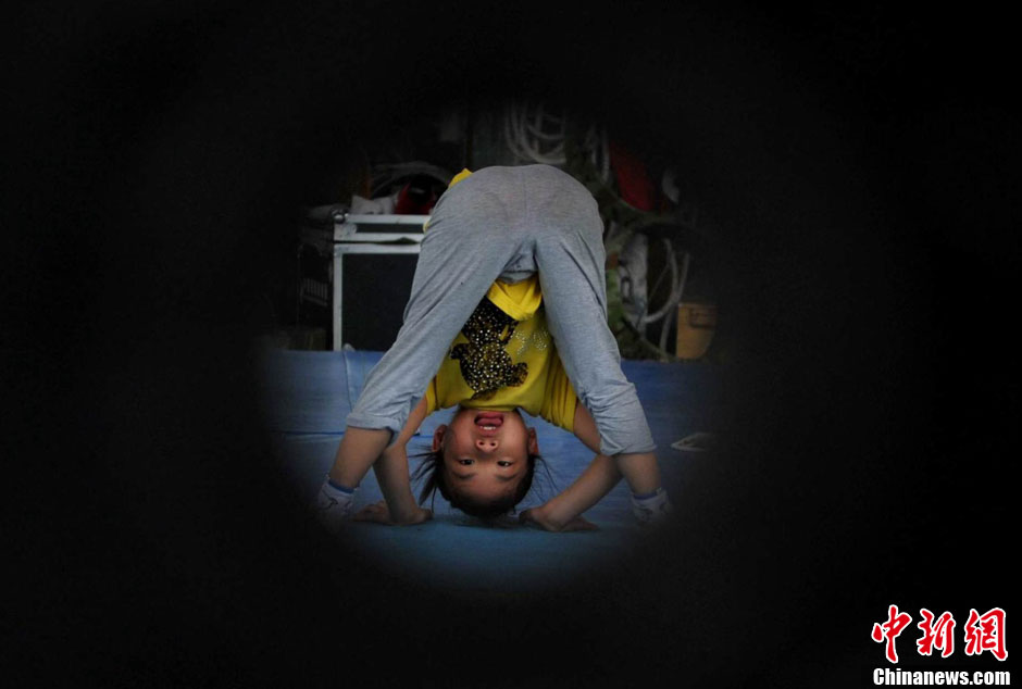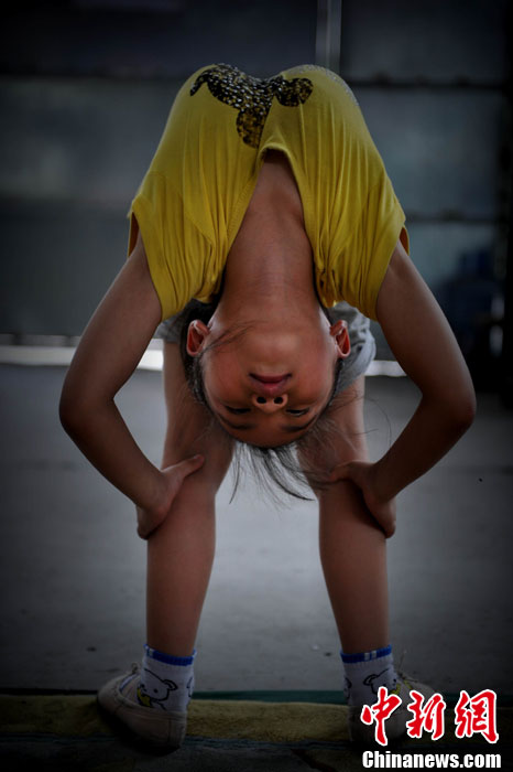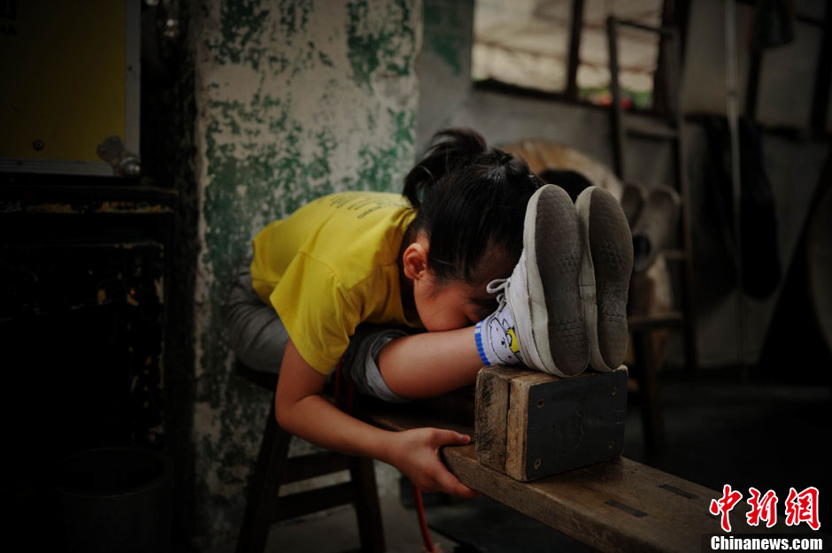 7歲,本應(yīng)是在父母懷里撒嬌的年齡,小秀華卻在福建省雜技團(tuán)訓(xùn)練場(chǎng)里度過(guò)一年的時(shí)間。壓腿、倒立、彎腰等基本功已練得扎扎實(shí)實(shí)。小秀華來(lái)自湖南,目前是團(tuán)里最小的學(xué)員,父母將她送來(lái)后已經(jīng)返回家鄉(xiāng),在這里的一切除了老師就靠她自己。但在記者看來(lái),她已表現(xiàn)出和自己年齡不符的成熟和堅(jiān)強(qiáng)。在訓(xùn)練過(guò)程中,有的動(dòng)作不是常人所能想象的痛苦,小秀華在無(wú)法忍受的時(shí)候從不會(huì)叫出聲,只會(huì)自己默默的流出眼淚,在外人看來(lái)感覺很心酸,但她自己卻覺得這是應(yīng)該的,所謂臺(tái)上一分鐘臺(tái)下十年功,小小的秀華已經(jīng)領(lǐng)悟到了。