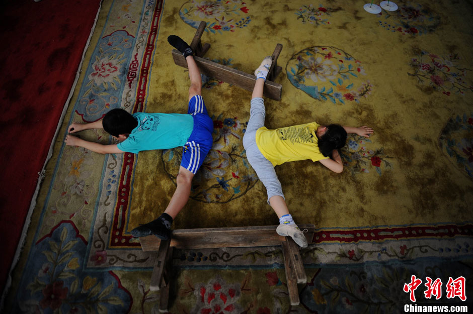 圖為小秀華練習(xí)壓腿。王東明 攝