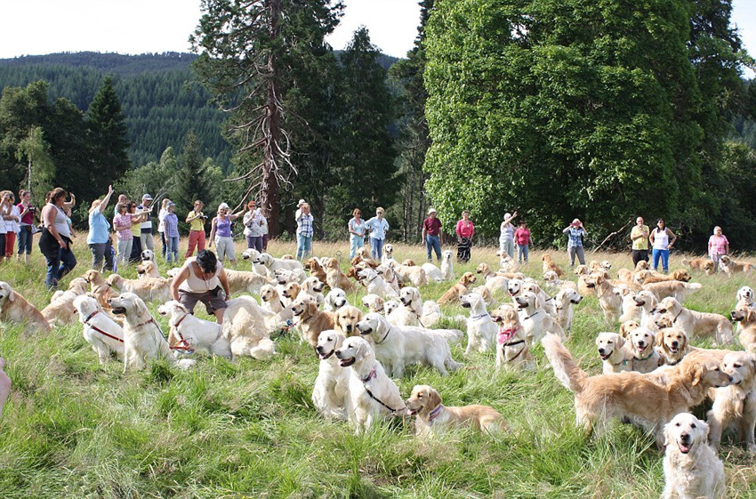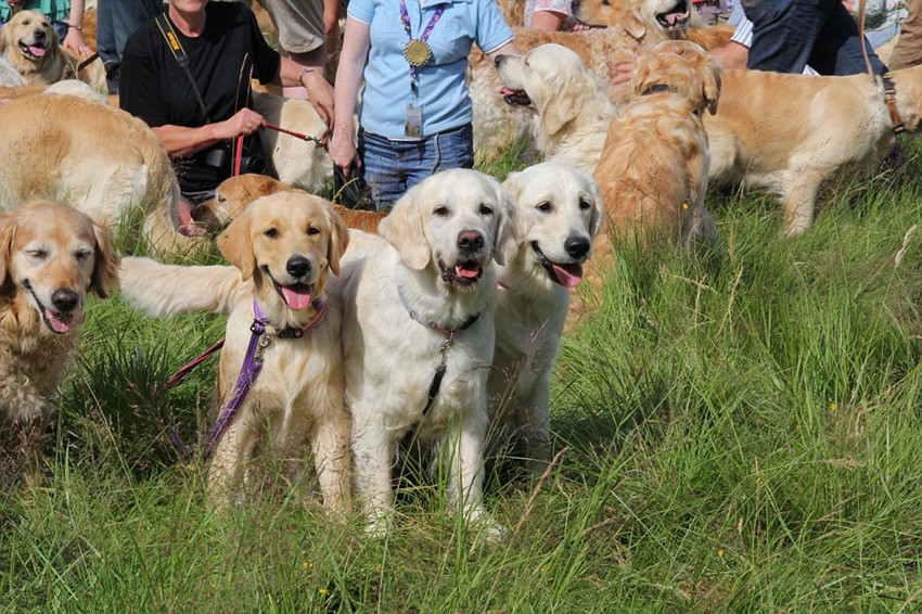 金毛犬,又名金毛尋回犬(Golden Retriever),其友好溫順的個性深得人們喜愛,在全球累積了不少“金毛粉絲”。據(jù)英國《每日郵報》8月13日報道,英國北部蘇格蘭的金毛俱樂部在上個月舉辦了第三場世界級的金毛犬聚會,邀請全世界的金毛飼養(yǎng)者帶著他們可愛的寵物——金毛犬,前來共享這一歡樂的時刻。而最終參加這個聚會的,有222只金毛犬。