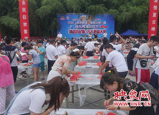 “挑戰(zhàn)吉尼斯 萬人吃西瓜”是由欒川重渡溝風(fēng)景區(qū)和鄭州支點(diǎn)旅游品牌策劃有限公司聯(lián)合打造的2016“燕京啤酒”重渡溝第八屆音樂啤酒狂歡節(jié)狂歡不停歇第三期主題活動(dòng)。當(dāng)日重渡溝景區(qū)熱鬧非凡,擺滿誘人西瓜的小方桌次第擺開,翠綠的皮、鮮紅的瓤、瓜香四溢。游客們熱情參與,現(xiàn)場(chǎng)妙趣橫生。有“推土機(jī)”式掃蕩吃法,有“生猛”地大口吞咽,有小朋友萌態(tài)啃瓜表情十足......真是吃得爽快,玩得暢快,贏得痛快。比賽分為“狼吞虎咽”男子組、“大快朵頤”女子組,每組冠軍將獲得3000元現(xiàn)金大獎(jiǎng)。經(jīng)過淘汰賽、決賽層層激烈角逐,最終比賽決出男女子組一、二、三等獎(jiǎng)各一名,所有參賽選手都乘興而來,滿載而歸!“來重渡溝吃西瓜感覺特別甜,特別痛快!從來沒有跟這么多人一起吃西瓜,一口氣連吃三塊還不過癮!”一位游客笑著對(duì)記者說。