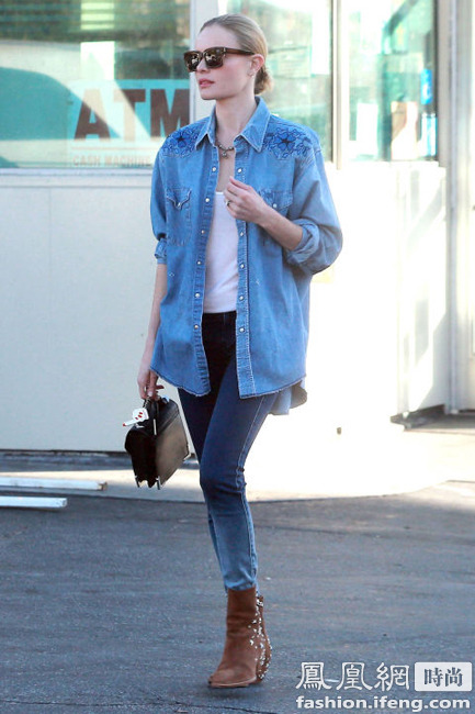 這一套造型讓牛仔成為主導(dǎo),Oversize的男孩式牛仔襯衫外套最能凸顯帥氣的Boy風(fēng)格,而和牛仔藍(lán)色最百搭的棕色系點(diǎn)綴其中,瘦腿的牛仔褲和上身形成強(qiáng)烈視覺(jué)對(duì)比,哪怕是披發(fā),也照樣酷勁十足!