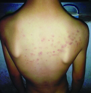 10月8日,謝女士在給小韋洗澡時,發(fā)現(xiàn)孩子的后背上都是紅斑,像是被什么硬東西戳傷的。從謝女士提供的照片可以看到,小韋的后背上是成片的紅斑,記者粗略地數(shù)了一下,紅斑超過50個?!爱?dāng)時我問他是怎么搞的,孩子也不說,我以為是在學(xué)校玩摔倒弄的,就沒再追問?!?/p>