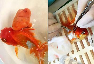 5歲寵物金魚(yú)長(zhǎng)巨型腫瘤 主人為其做手術(shù)