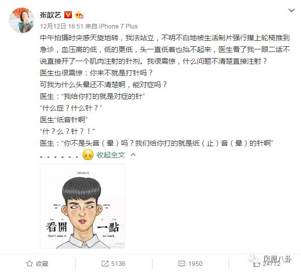 昨天張歆藝發(fā)微博控訴醫(yī)生看病態(tài)度不佳,在不問診的情況下就強(qiáng)行要求她打針,文末張歆藝還暗暗吐槽醫(yī)生口音太重,交流十分困難。