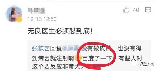 張歆藝不滿被“強(qiáng)迫”打針也有她的看法,她貼出了百度百科對該藥物的解釋,稱“知識改變命運(yùn)”,認(rèn)為醫(yī)院在不給自己做“皮試”的情況下就打針是不負(fù)責(zé)任的。
