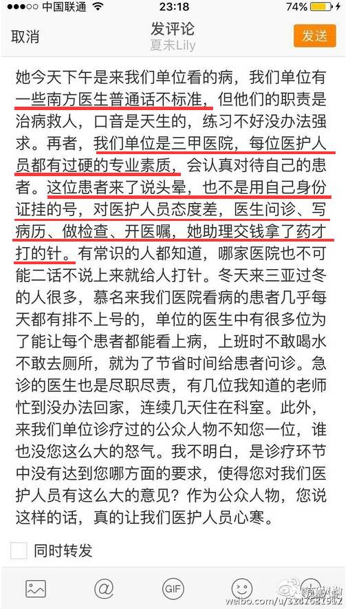 網(wǎng)友的態(tài)度一般是各站一邊,有吐槽部分醫(yī)生看病態(tài)度確實(shí)存在問題,也有網(wǎng)友質(zhì)疑明明該排隊(duì)看門診,為何利用明星身份擠占急診的名額。