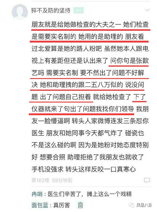 不少網(wǎng)友也補(bǔ)充說明了當(dāng)時的情況,力證醫(yī)生當(dāng)時給張歆藝做了全套檢查,張歆藝在結(jié)束檢查后還威脅醫(yī)生“出了問題找你們領(lǐng)導(dǎo)”。