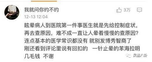 對于張歆藝反應(yīng)的醫(yī)生在看病開始就要求打針,有些醫(yī)生站出來解釋說這是看病的常規(guī)手段,先緩解了你暈眩的癥狀,再進(jìn)一步做儀器檢查,以免加重病人的痛苦。