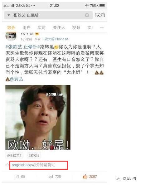 但張歆藝此次吐槽醫(yī)生卻受到前所未有的群嘲,孕媽Angelababy看八卦時手滑點(diǎn)贊了吐槽張歆藝的微博,還被網(wǎng)友稱贊了……