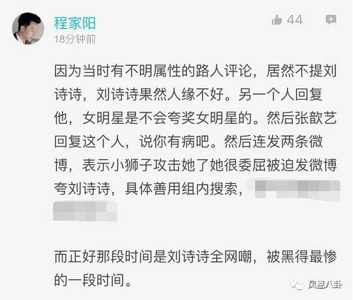 隨后有緊跟兩條夸贊劉詩詩,但口氣卻不似正常表揚(yáng)。