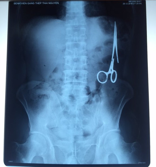 超聲波檢查顯示,M.V.N的腸子中有個(gè)奇怪物體,看起來就像醫(yī)用剪刀。M.V.N證實(shí),他曾于1998年6月份在北江省綜合醫(yī)院接受手術(shù),在此后也從未進(jìn)行過任何手術(shù)。近來,他感到腹部有些疼痛,并試圖通過服用藥物治療。12月27日,M.V.N回到北江省綜合醫(yī)院再次進(jìn)行超聲波檢查,顯示其腹部的確存在怪異物體。