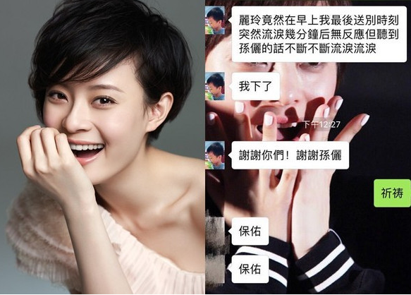 據(jù)臺灣媒體《東森新聞云》3月13日報道,大陸女星孫儷因為演出《后宮甄嬛傳》、《羋月傳》等戲,紅透兩岸三地。最近有名叫“麗玲”的粉絲腦死昏迷36小時;沒想到孫儷得知,本人竟錄音,聲聲喚“趕緊醒過來”;并答應(yīng)愛畫圖的她,等她醒來,“我就坐在你面前讓你畫?!睕]想到她聽完竟流淚,也醒過來了。