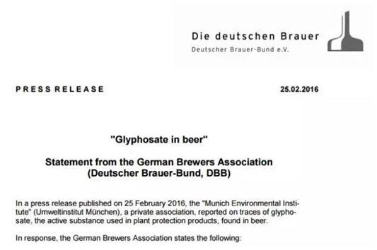新聞中提到,14款熱銷啤酒檢測出農(nóng)藥殘留的結(jié)果,是由慕尼黑環(huán)境研究所公布的研究報(bào)告中顯示的。對此,鐘凱表示,慕尼黑環(huán)境研究所是一個(gè)非官方的私營機(jī)構(gòu),而草甘膦作為合法的農(nóng)藥在德國和全世界已經(jīng)使用了長達(dá)幾十年。