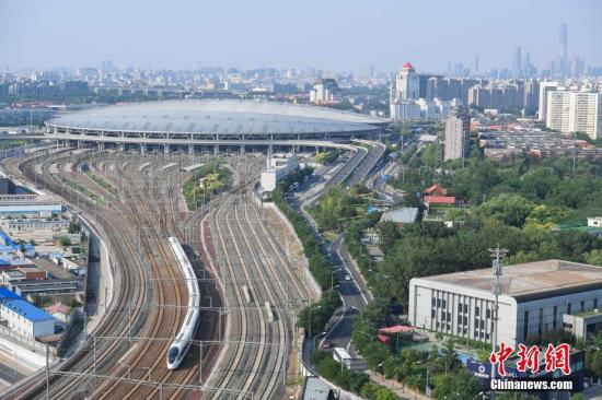 6月26日,具有完全自主知識(shí)產(chǎn)權(quán)的中國標(biāo)準(zhǔn)動(dòng)車組“復(fù)興號(hào)”在京滬高鐵正式雙向首發(fā)。中新社記者 侯宇 攝