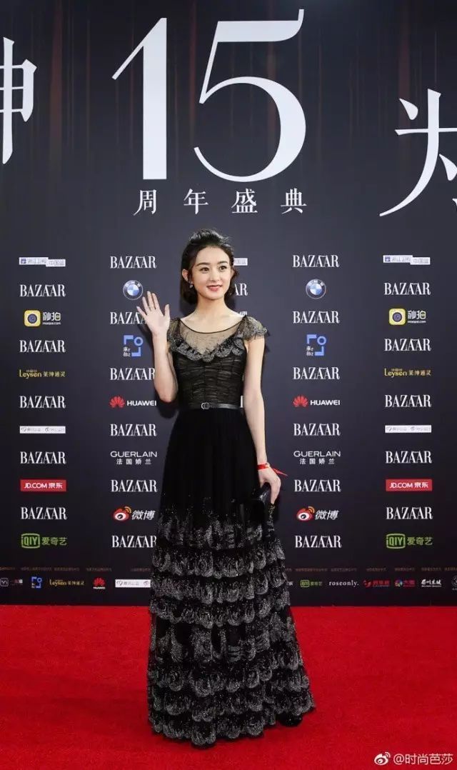 剪了短卷發(fā)的趙麗穎俏皮許多,一身黑色長(zhǎng)裙莊重中帶著一絲可愛。