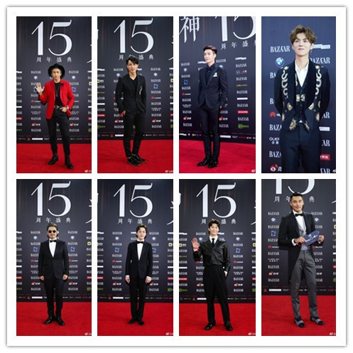 男明星一水的西裝,除了鄧超還有點(diǎn)新意,穿了個(gè)紅色的。