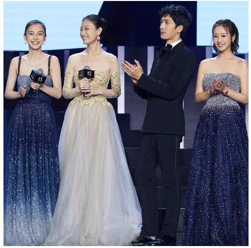 baby身著一襲漸變色長(zhǎng)裙星光長(zhǎng)裙,閃瞎你的眼了沒???尷尬的時(shí)刻來了,同臺(tái)的李純也是星光裙。