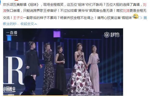 歡樂頌五美直接把感情寫在歌上,可惜,一首《姐妹》唱的比時(shí)代姐妹花還尷尬。