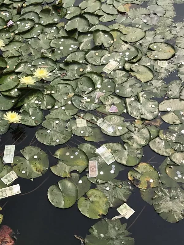 西湖睡蓮被游客撒滿錢 一夜之間消失不見