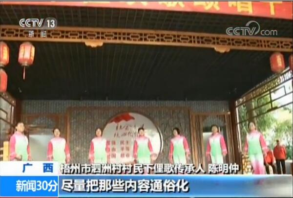 廣西梧州市泗洲村村民下俚歌傳承人 陳明仲:把十九大精神變成下俚詞來(lái)演唱,就盡量把這些內(nèi)容通俗化,讓村民容易理解。